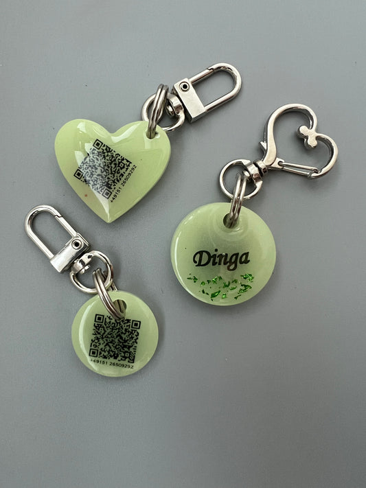 Unsere lautlosen, personalisierten Anhänger aus Resin mit dem Namen Ihres Lieblings, Ihrer Telefonnummer oder einem QR-Code, verbinden Schönheit und Funktionalität auf eine unverwechselbare Weise.